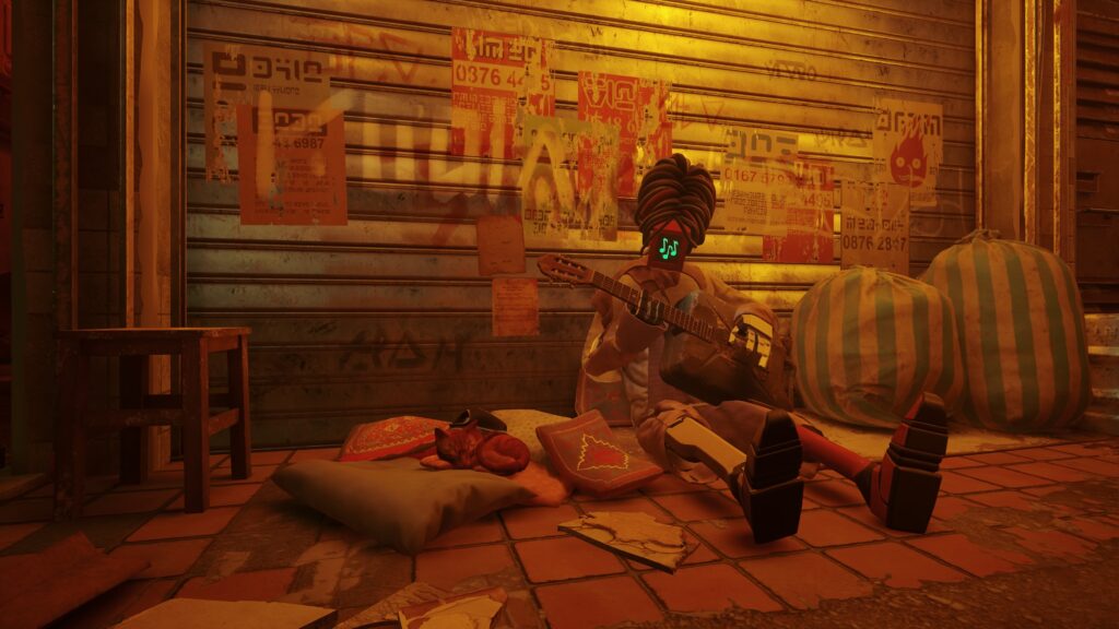 Stray (BlueTwelve Studio) is a cozy cat game set in a post-apocalyptic scifi world. A ginger tabby is separated from his family, after a pipe breaks casting him down into the dark depths of an underground city. After finding a tiny flying robot with spotty memories, kitty and bot attempt make their way up through the depths and back to the surface. Along the way, the kitty meets and befriend a number of companion bots, and the player gets a look at a world in which humanity is lost, but remembered through the manners and longings of the robots left behind.